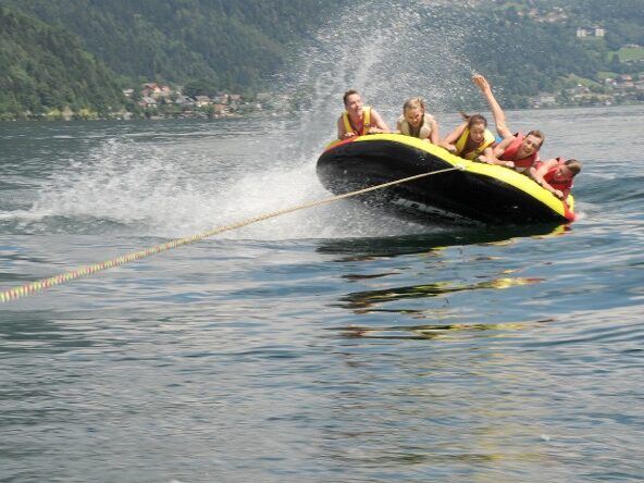 … und zum Schluss noch ein paar Worte an die Sportlichen gerichtet: unser Sport ist das Schifahren – egal ob auf Wasser oder Schnee! In der hauseigenen Wasserschischule, kann man es auf Wasser relativ unkompliziert in ein paar Tagen erlernen und am Schnee, gelingt es auch ganz gut, da 5 Schigebiete innerhalb von 30 Autominuten erreichbar sind.